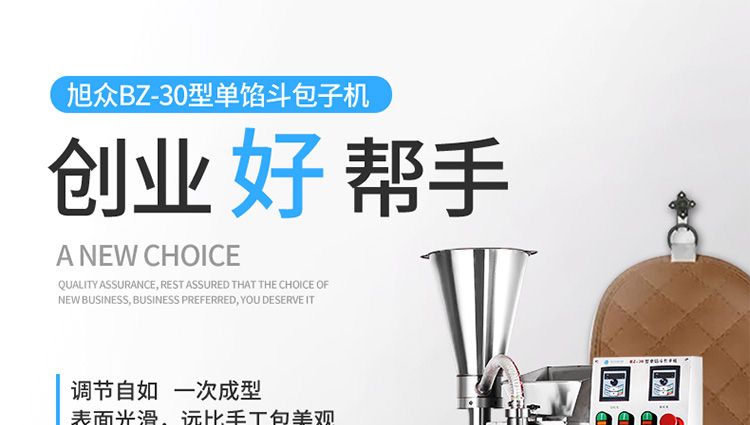 ◆ 旭眾牌BZ-30全自動小型包子機采用雙變頻控制,面、餡大小調(diào)節(jié)自如、使用方便。產(chǎn)品一次成型,所出產(chǎn)品外形大小統(tǒng)一、表面光滑、花紋整齊,遠比手工包美觀。