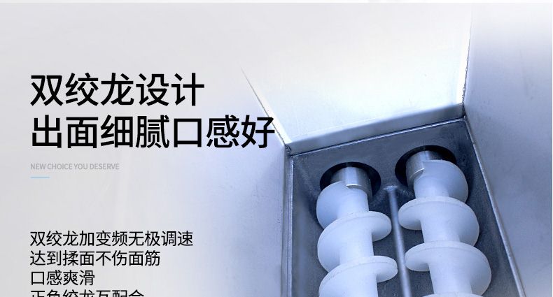 ◆ 按照面點工藝要求的動力學科學設(shè)計,保證了產(chǎn)品氣孔的均勻細膩,彈韌性、持水性好,且制品表面光亮細膩、花紋整齊、口感滑爽,遠遠超過手工制作的產(chǎn)品。