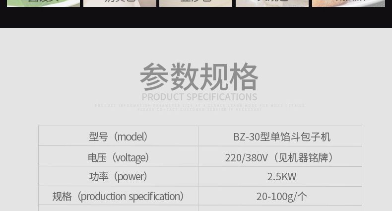 BZ-30型單餡斗包子機,可生產(chǎn)豆沙包、南瓜餅、肉包、小籠包、菜包、圓饅頭、奶黃包、叉燒包、湯包、水晶包等幾十種包餡制品。適用于個體戶、速凍食品廠、學校等各種工作場所。可滿足不同客戶群體。免費提供工藝技術(shù)。