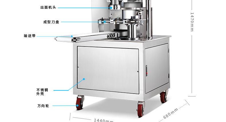 ◆ 結(jié)構(gòu)合理,成型、進餡、進面與控制面板均由獨立電機帶動不易發(fā)生連帶故障,且維修及拆裝清洗方便。