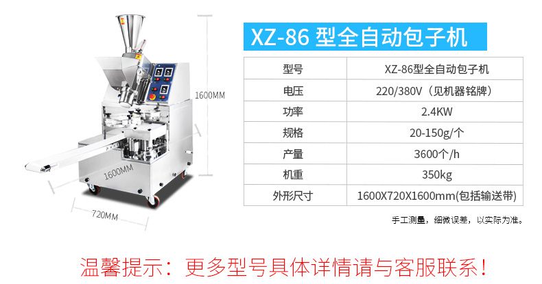 ◆ 生產(chǎn)品種多樣化,可生產(chǎn)各種不同餡料的包子,廣泛用于個體戶、速凍食品廠、學校等單位。可滿足不同客戶群體。