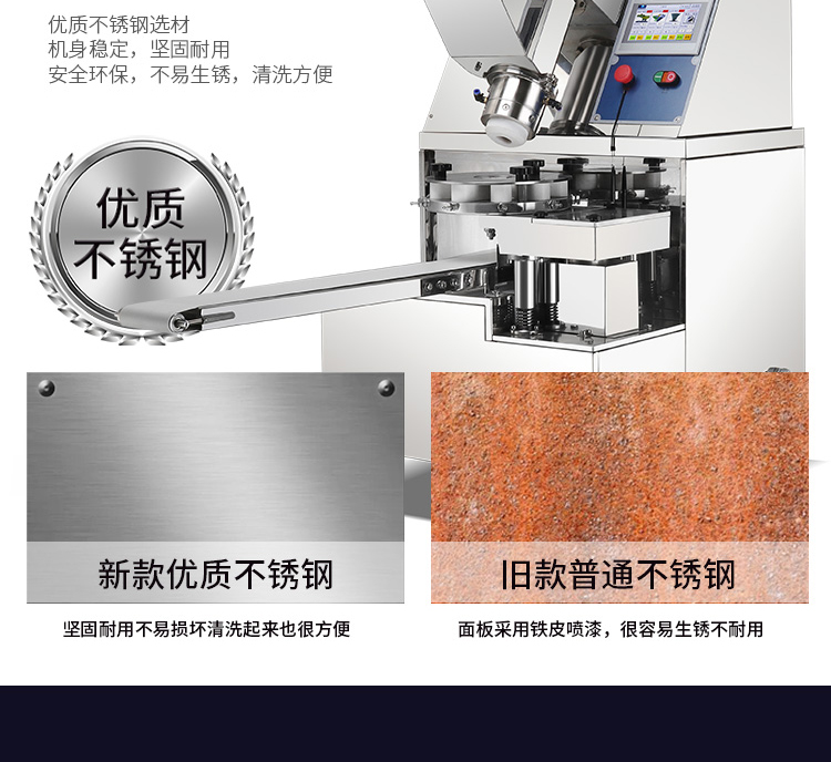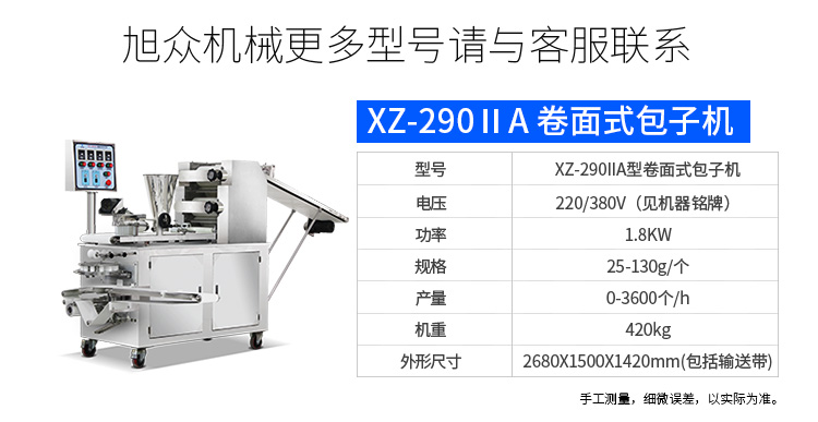 旭眾牌XZ-915全自動包子機體積小重量輕,外殼及接觸食品部分均由不銹鋼制造,外觀精美耐用;采用三變頻無極變速調(diào)控,生產(chǎn)性能穩(wěn)定。設(shè)計先進,結(jié)構(gòu)簡單,操作方便。包子機三大特色: