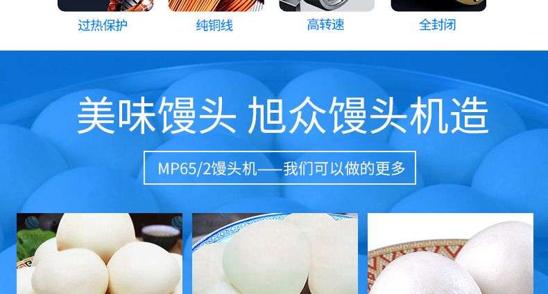 MP65/2型饅頭機(jī),可生產(chǎn)各種饅頭、圓饅頭、光頭饅頭、饃饃等面制品。適用于個(gè)體戶、食品廠、學(xué)校等單位食堂。可滿足不同客戶群體。免費(fèi)提供工藝技術(shù)。