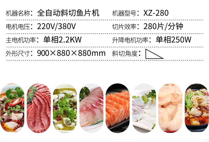 本機外形美觀、操作簡單、效率高、耗電小、清潔保養(yǎng)容易、安全衛(wèi)生、切肉效果好等優(yōu)點,切鮮魚機器其造型美觀、結(jié)構(gòu)緊湊、堅固耐用,切魚片機器價格實惠是賓館、酒家、食堂、肉類加工場等單位所不可缺少的肉類加工機械。