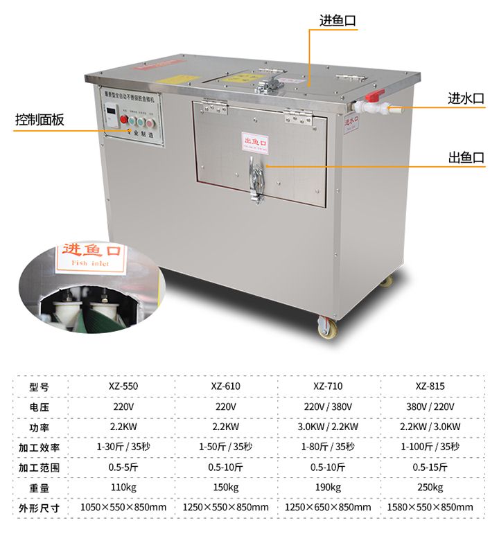 型號(hào) | XZ-550去魚鱗機(jī) | XZ-610去魚鱗機(jī) | XZ-710去魚鱗機(jī) | XZ-815去魚鱗機(jī) |