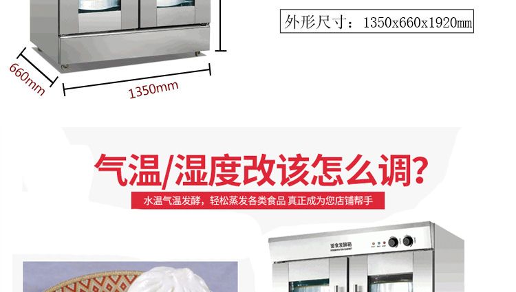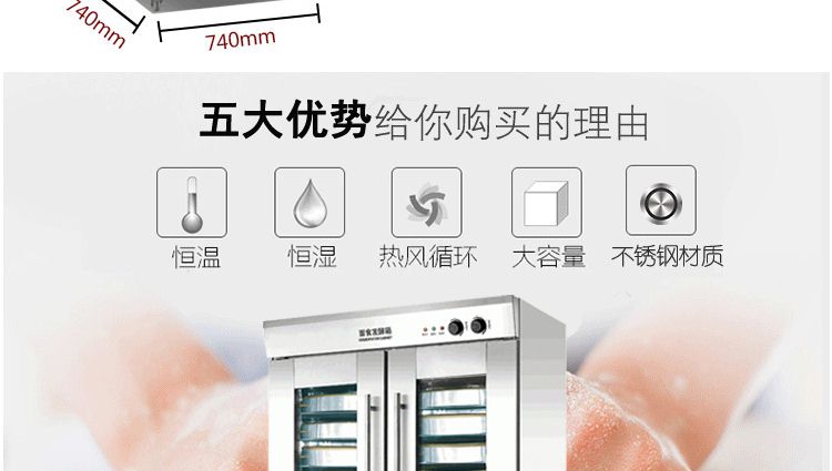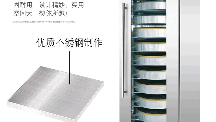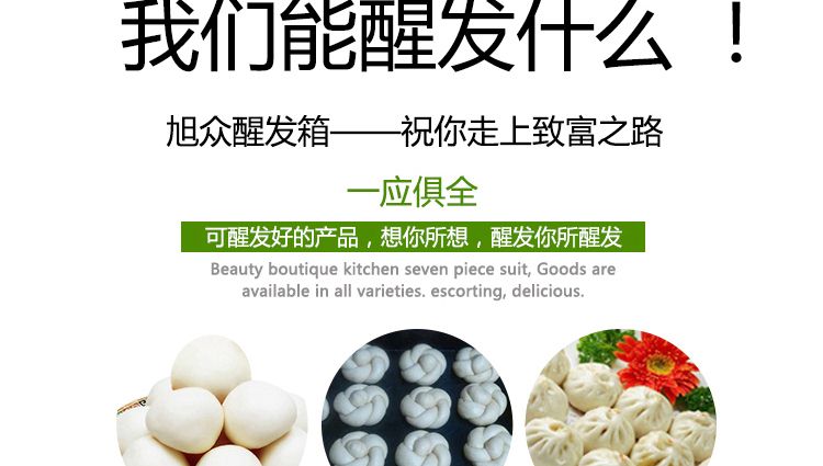 旭眾蒸籠醒發(fā)箱采用全不銹鋼制成,利用電熱管通過自動調(diào)節(jié)使箱內(nèi)熱水加熱,產(chǎn)生大量水蒸氣。使箱內(nèi)濕度達(dá)80-85%,可將溫度自動控制在35-40℃之間,形成適合發(fā)酵環(huán)境,并增設(shè)加溫干燒管及發(fā)熱片,保持箱內(nèi)溫度以及把水珠加熱霧化,使發(fā)酵過程達(dá)到很好效果,是糕點生產(chǎn)配套的理想設(shè)備。