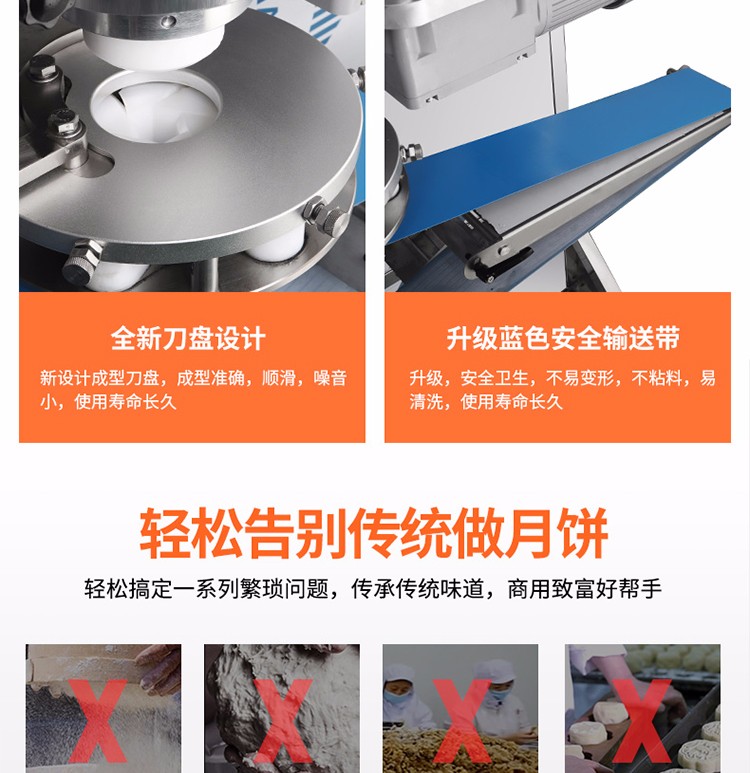 2.餡管更短,管內(nèi)存料少,減小出餡壓力,有效保護(hù)餡料顆粒,使餡料更松散、產(chǎn)品重量、皮餡比例更加穩(wěn)定,適用多種餡料;